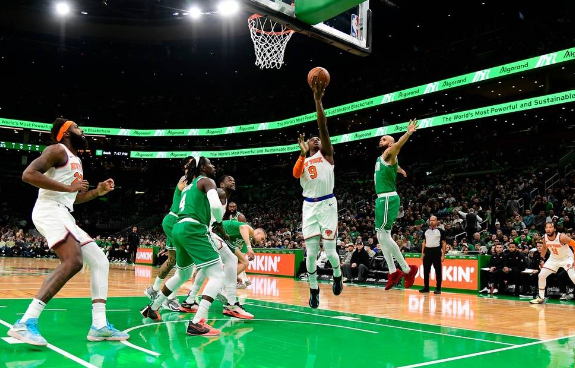 尼克斯队首发:RJ-巴雷特、杰伦-布伦森、朱利叶斯-兰德尔、米切尔-罗宾逊、丹特-迪文琴佐
